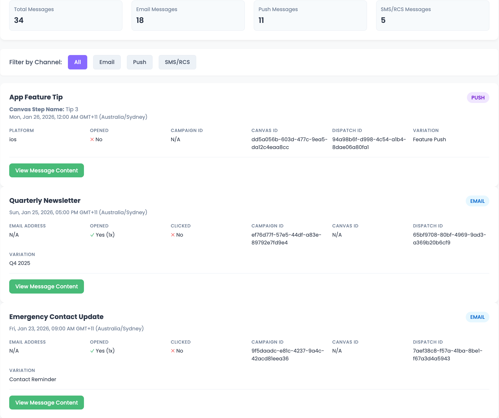 - Multi-channel: Email, SMS, RCS and Push engagement and content.