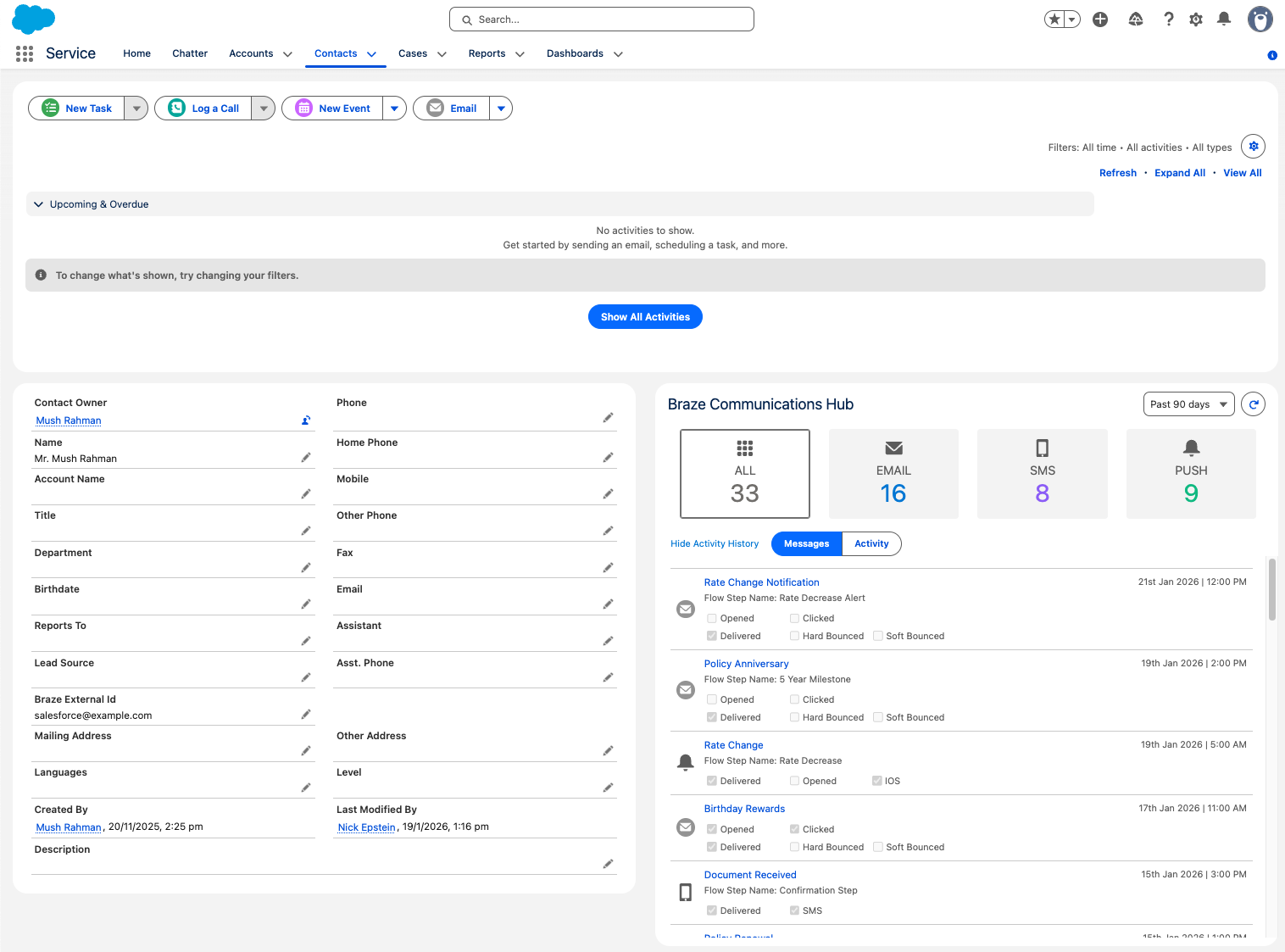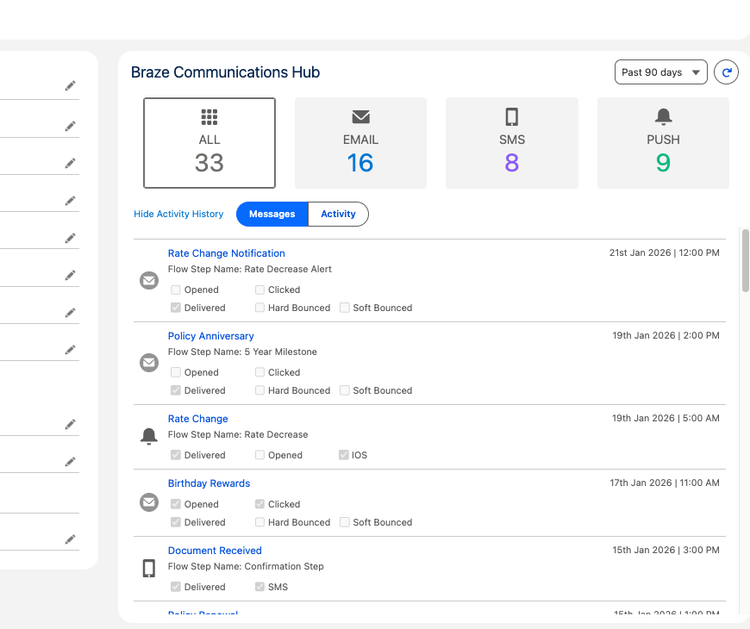 Sales, support, and success teams can't see what messages customers received from Braze. They work in Salesforce, ServiceNow, or other CRMs but operate blind to engagement history.